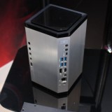 The barebones desktop PC (no storage or memory included) features a Skylake-U Core i7 processor paired with NVIDIA’s GTX 950 graphics card. It features support for 2.5″ or M.2 SSDs, and up to two DDR4 DIMMs. The unit measures 220 mm x 110 mm x 110 mm (HxWxL), making it quite the console competitor. The design is also quite minimalist, featuring a black and silver, brushed aluminum chassis, which is mostly square and much taller than previous BRIX models.